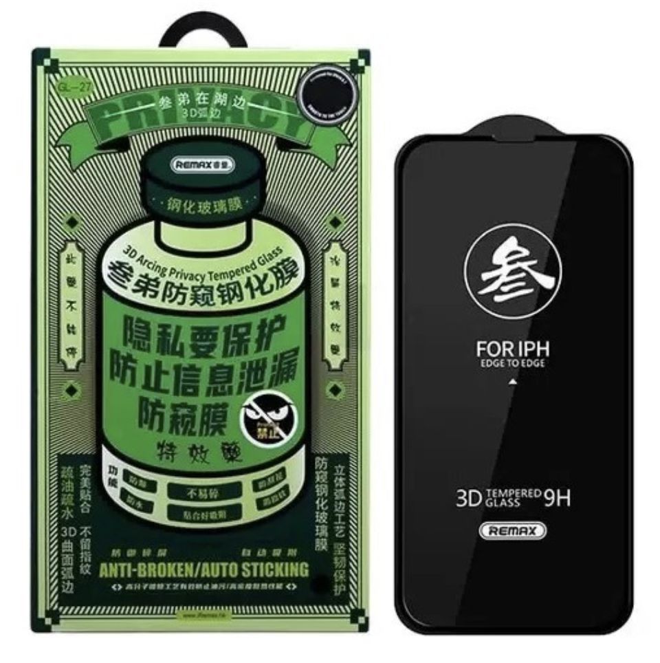 Защитное стекло Remax для iPhone 15 3D антишпион черное