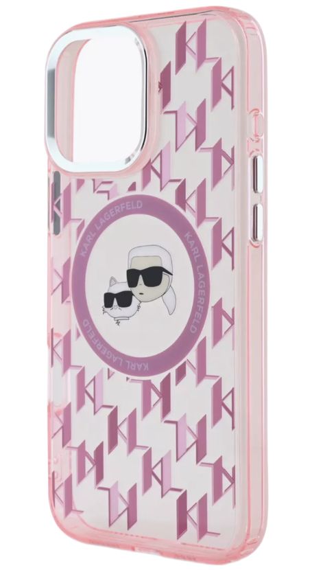Чехол Karl Lagerfeld MagSafe для iPhone 16 Pro Max с логотипами Карл и кошка розовый