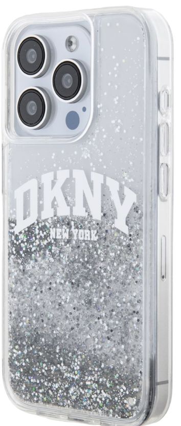 Чехол DKNY Liquid Glitter для iPhone 15 Pro Max лого серебристый