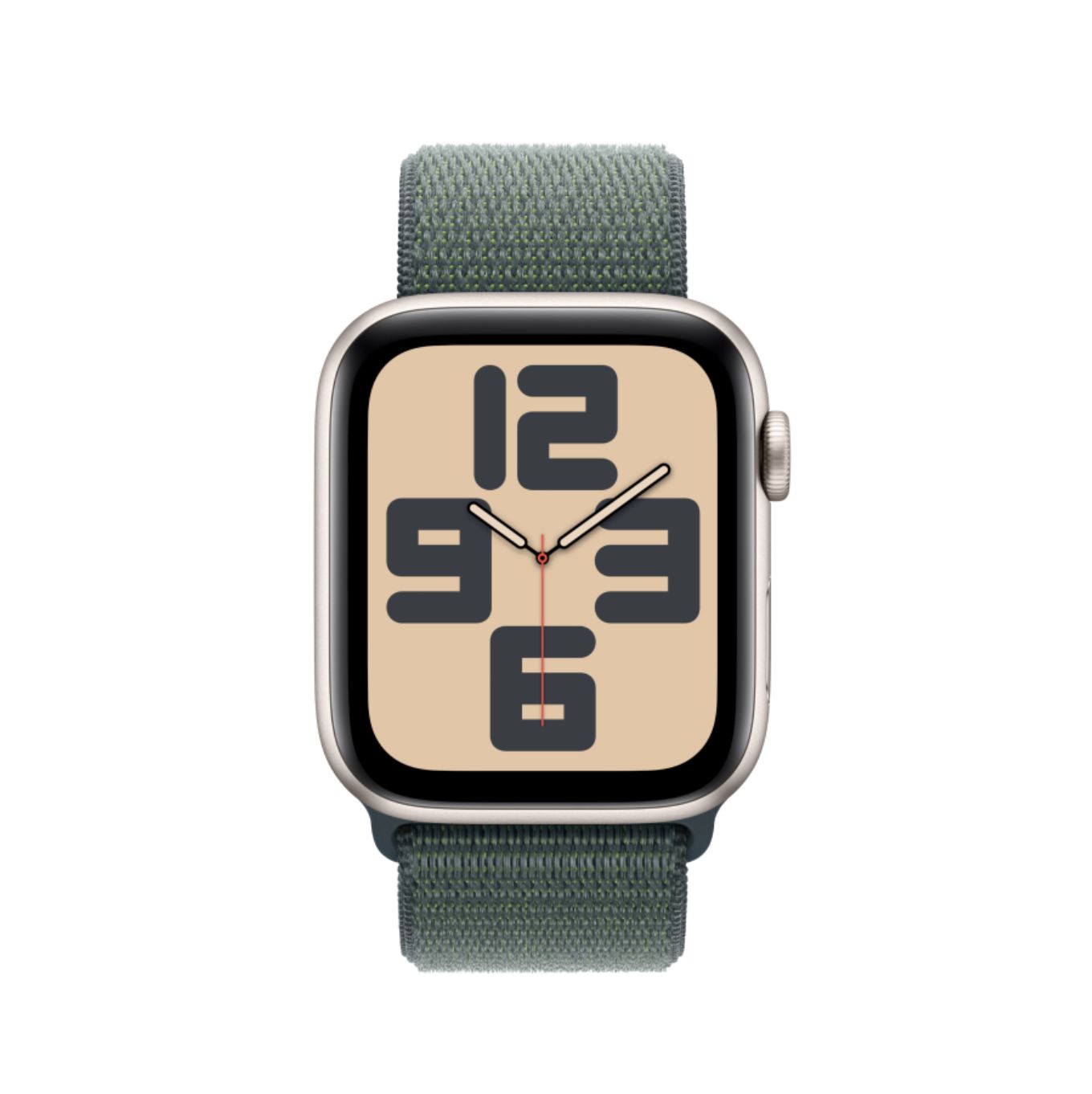 Apple Watch SE 2024, 44 мм, корпус из алюминия цвета «сияющая звезда», ремешок нейлон зеленого цвета