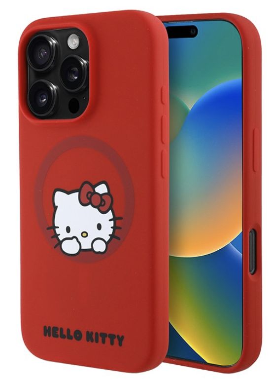 Чехол Hello Kitty MagSafe Liquid Silicone для iPhone 16 Pro Max красный