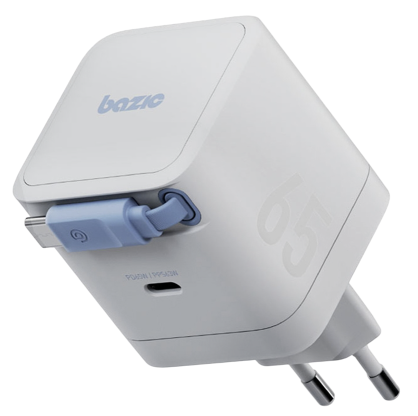 СЗУ Bazic Retrek 65W Type-C с кабелем Type-C 0,7м белое