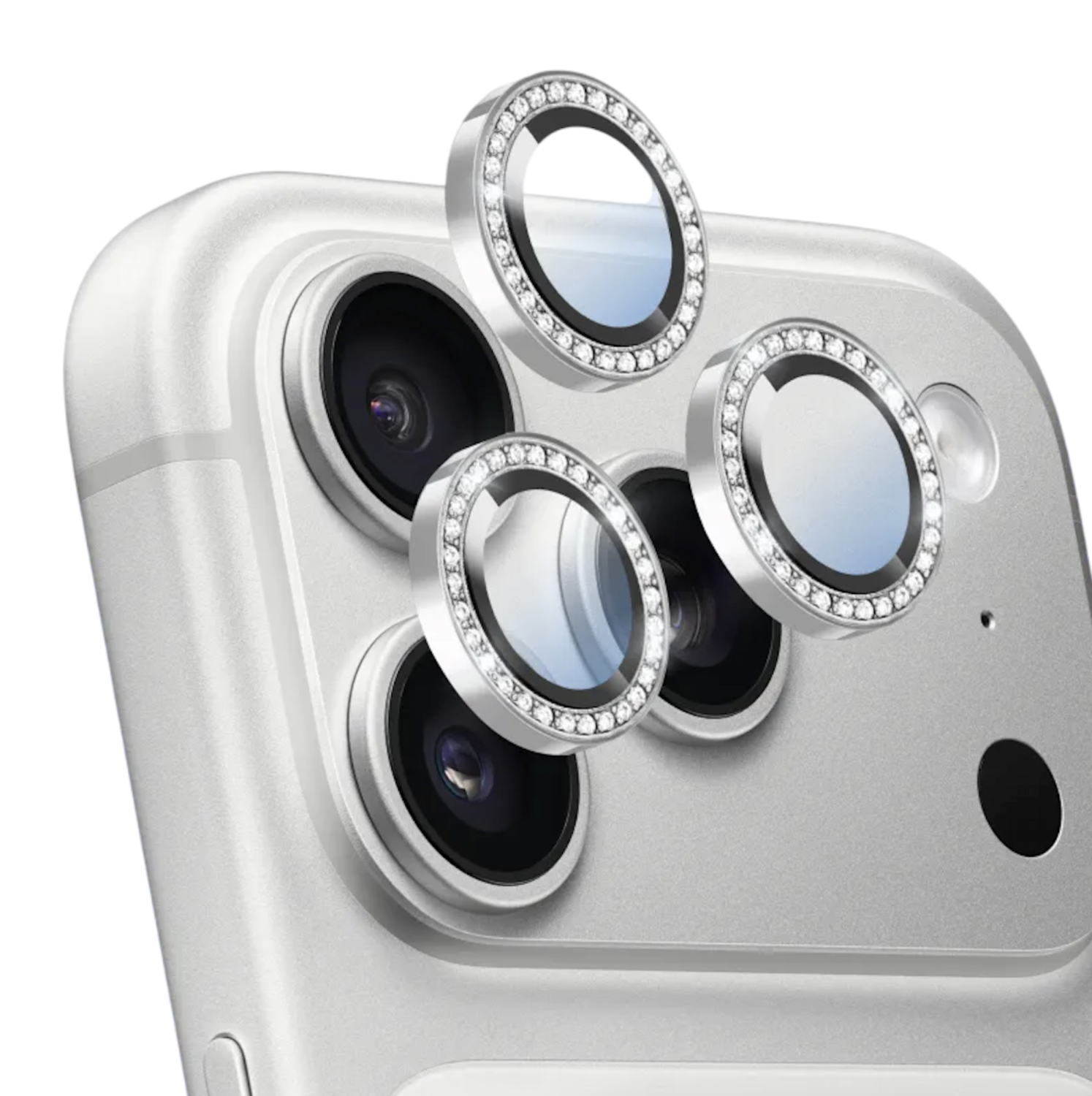 Защитное стекло камеры Keephone Maria для iPhone 17 Pro/17 Pro Max серебристое с блестками