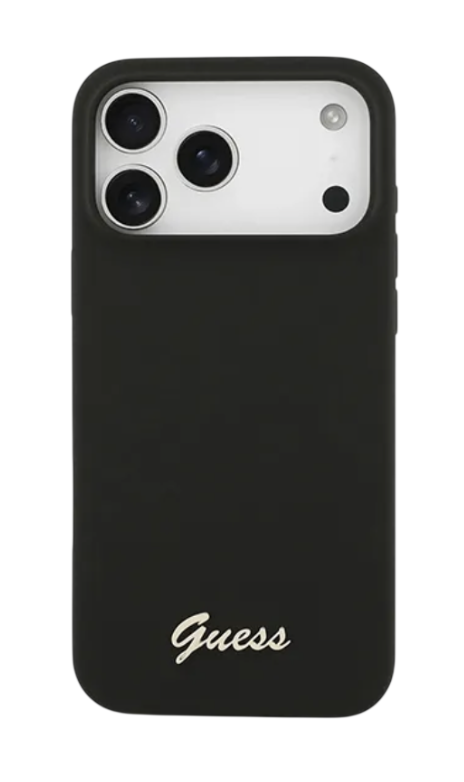 Чехол силиконовый Guess MagSafe для iPhone 17 Pro Max черный c золотым лого