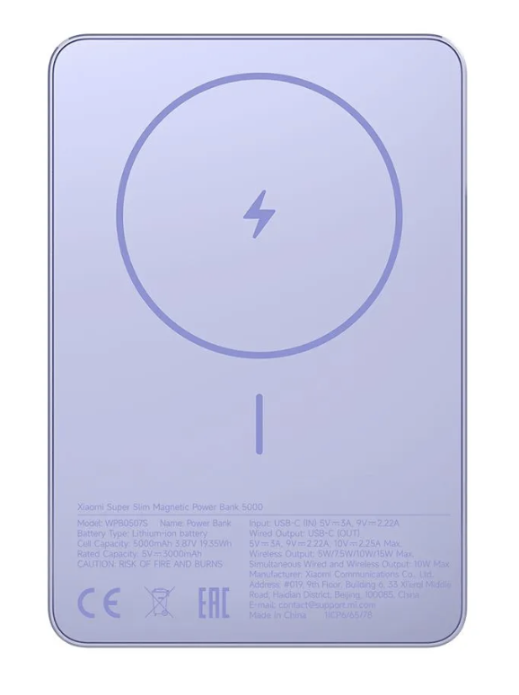 Портативный аккумулятор Xiaomi Magnetic Ultra-Thin Power Bank 5000 mAh 7.5W WPB0507S фиолетовый