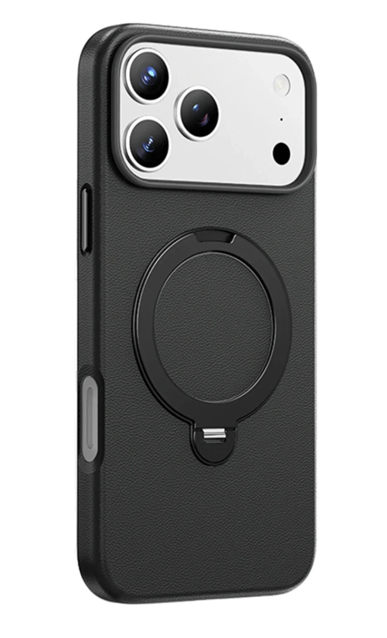 Чехол кожанный Keephone Mehold с MagSafe для iPhone 17 Pro Max черный с подставкой