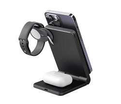 Док-станция БЗУ Wiwu (Wi-W038) 3в1 15W Wireless Charger песчано-черный