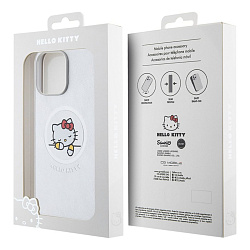 Чехол Hello Kitty MagSafe для iPhone 15 Pro под кожу серебристый